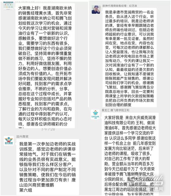 课后,学员们也相互交流学习感受,在腾飞为润滑油行业代理商搭建的平台,发表自己的看法与学习心得。