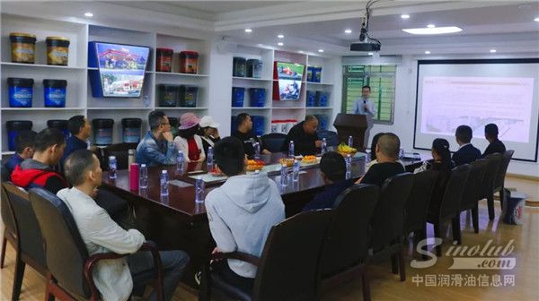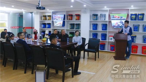 紧接着优秀经销商代表们来到厂区办公楼三楼举行了一个客户沟通交流会。在会上,鲁克公司李隘旭副总经理就企业发展、企业文化、市场销售、研发团队、未来规划等方面全方位、多角度进行了详细说明。而后技术部的陈志东总监对来访的经销商代表进行了润滑油基础知识培训及技术讲解,并解答了客户平时遇到的一些问题,会议中客户频频点头称赞。