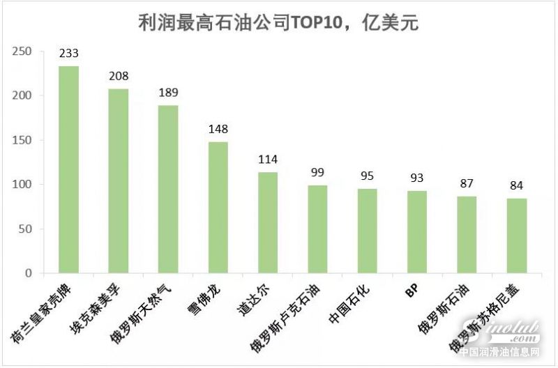 传统石油巨头BP重新回归利润排行榜的前10强。此外,俄罗斯石油公司在利润方面表现亮眼,10强中占据了4个席位。