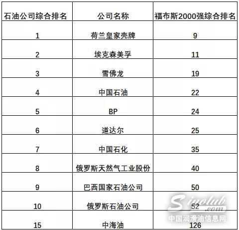 5、综合排名最高的10大石油公司