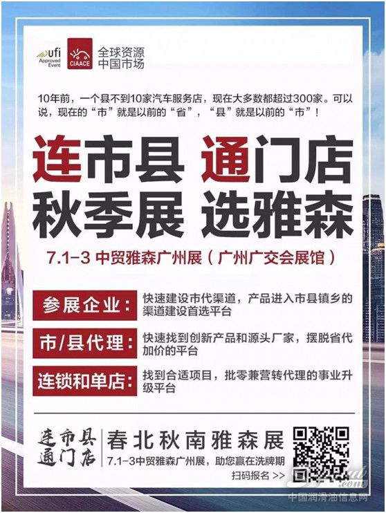 更多资讯,欢迎扫描上方二维码关注中国润滑油信息网微信公众号(sinolub)