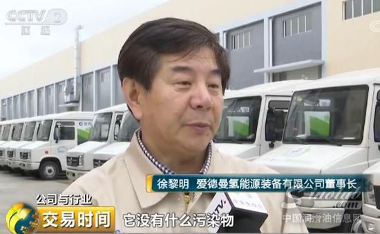 爱德曼氢能源装备有限公司董事长 徐黎明:氢燃料电池是一个电化学发电装置。氢发电要比柴油发电更加经济一些,传统的柴油机也好,内燃机也好,热功率效率一般在三十几不超过四十。如果通过氢气的电化学反应,效率能达到七十甚至更多。