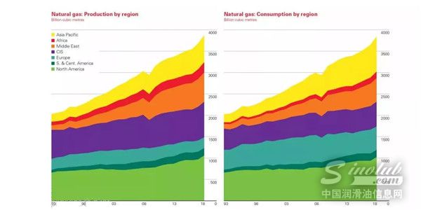 其中,天然气消费增长是推动全球一次能源消费的主力军,对能源消费增长的贡献率超过40%。2018年全球天然气消费量增长了1950亿立方米,即5.3%,是1984年以来最快增速之一。而天然气消费的增长主要是由美国(780亿立方米)推动的,中国(430亿立方米)、俄罗斯(230亿立方米)和伊朗(160亿立方米)也极大地推动增长。