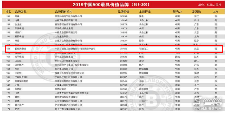 2008年北京奥运会落幕后,权威品牌研究机构--世界品牌实验室在京发布2008年“中国500最具价值品牌排行榜”。长城润滑油以112.68亿元的品牌价值位居排行榜第59位,品牌价值增长100亿,成为了当年唯一跻身“百亿俱乐部”的润滑油品牌。