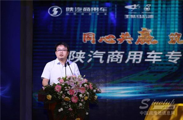 陕汽商用车财务总监张鲁先生发表讲话,他表示,陕汽商用车率先跨越行业领域,与品牌润滑油公司强强联手,进行战略合作,开发陕汽商用车售后专用油全系列产品。陕汽商用车售后专用油品上市发布,是“再造新陕汽”发展历程中一个极具重大意义的事件。陕汽商用车将不负众望,顺应市场,满足客户需求,进一步做强做大品牌,更好的服务市场,服务消费者,实现市场业绩的全面丰收和互惠互赢。