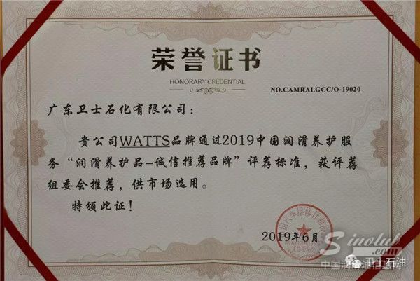 卫士石油凭借出色的市场表现和优异的消费者口碑,荣获“2019中国润滑养护服务汽车养护品推荐品牌”称号。