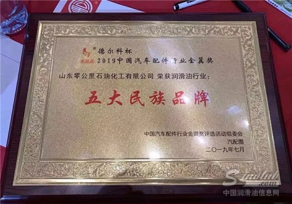 零公里润滑油荣获“2019中国汽车配件行业金翼奖润滑油五大民族品牌”