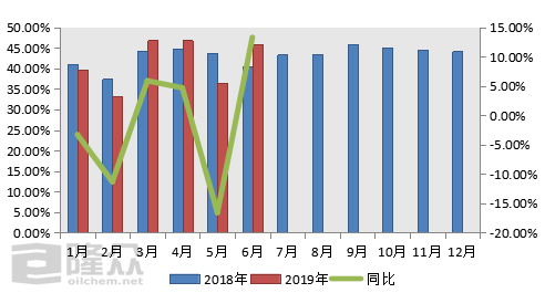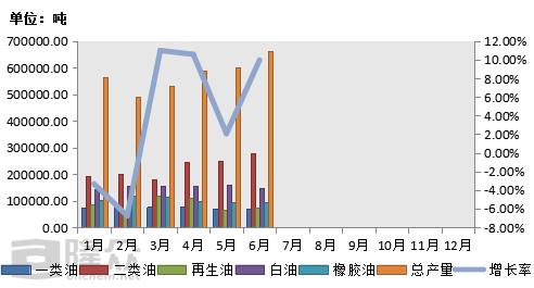 隆众数据显示,上半年基础油市场整体开工率在41.51%。上半年二类基础油装置开工率在45.55%左右,同比下降9.69%左右。上半年中海油惠州自2月份检修至5月份,东营奥星石化6月开始检修,至7月中旬。辽宁海化5月中旬开始检修至7月中旬。潍坊石大昌盛3月份开始检修,开工时间未定。大连恒力自5月下旬开工后,6月基本全负荷生产,对市场开工率有一定拉动。
