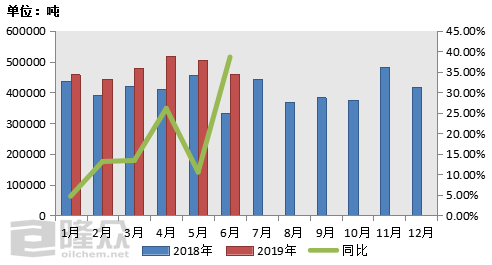 隆众数据显示,截止2019年上半年,新投产企业产能累计215万吨,每月新增产量大概6.5万吨。2019年市场产量预计在700万吨左右。未来五年内仍有600万吨的二类、三类新增产能计划投产。