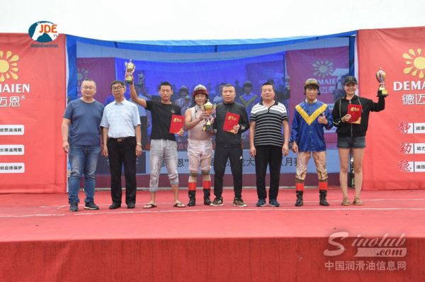 展示会举行同期,德迈恩润滑油冠名赞助的“德迈恩”杯山海关汣龙杯大赛马也在秦皇岛汣龙农场盛大开赛,3场精彩纷呈的大赛马活动,为每位嘉宾带来别开生面的视觉体验。比赛时恰逢大雨滂沱,骑士们不畏风雨,与骏马一起在马场飞驰,风雨无阻,其奋勇向前竞技精神赢得观众们的一致认可,也与德迈恩润滑油终端经销商扎根行业、深耕市场的品牌理念相一致。为把客户服务落到实处,做到细处,他们总是第一时间出现在客户需要的地方,无论风云变幻,山河险阻。这种不畏艰难、为梦想疾驰的精神,获得以德迈恩润滑油董事长刘启俊先生为首的在场嘉宾的深深共鸣,纷纷为不惧风雨的骑士们点赞,为风雨兼程的德迈恩同仁们点赞。