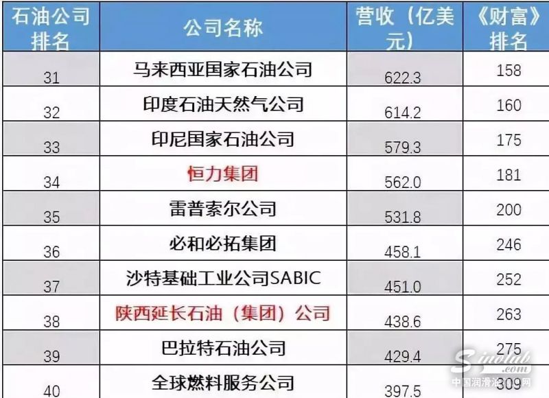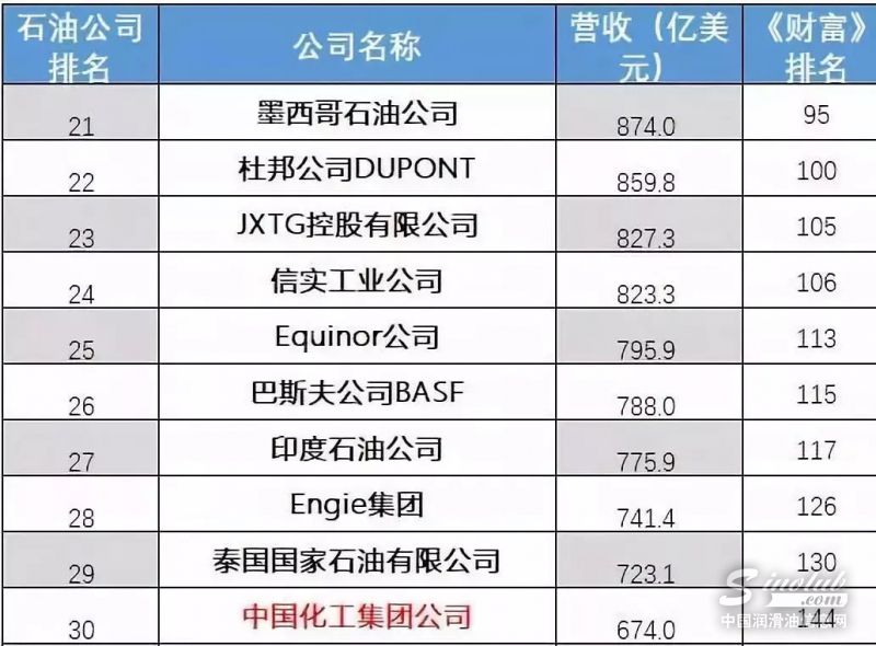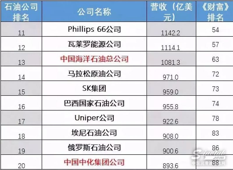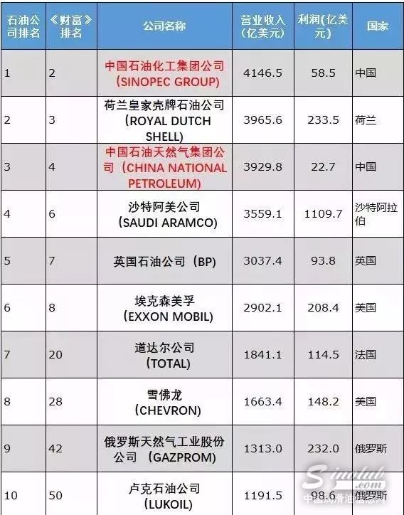 世界10大石油公司榜单中,中石化营收同比提升了近千亿美元,继续稳居榜首,中石油紧随其后,位列第三位。