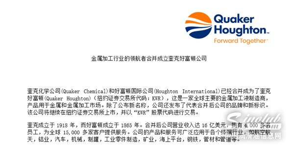 金属加工液两大全球巨头——奎克与好富顿宣布合并!作为融入汽车和机械基因的润滑油行业头部全媒体平台,中国润滑油信息网(www.sinolub.com )从奎克好富顿公司获得消息,两家公司已决定合并为一家新公司,以奎克好富顿(Quaker Houghton)在继续在纽约证券交易所上市。