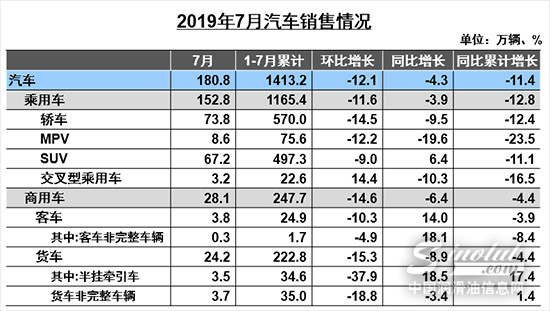1-7月,汽车产销1393.3万辆和1413.2万辆,同比下降13.5%和11.4%;乘用车累计销量达1144.0万辆,同比下降8.8%。业内注意到7月销量下滑幅度收窄,但中汽协人士认为,主要是上年基期销量已经很低,并非是车市回暖的征兆。