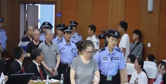 16名犯罪嫌疑人被依次带入法庭内