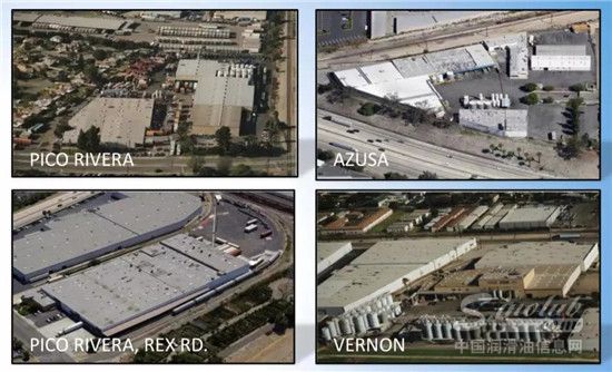 位于美国洛杉矶的四家润滑油工厂分别成立于1956年/1982年