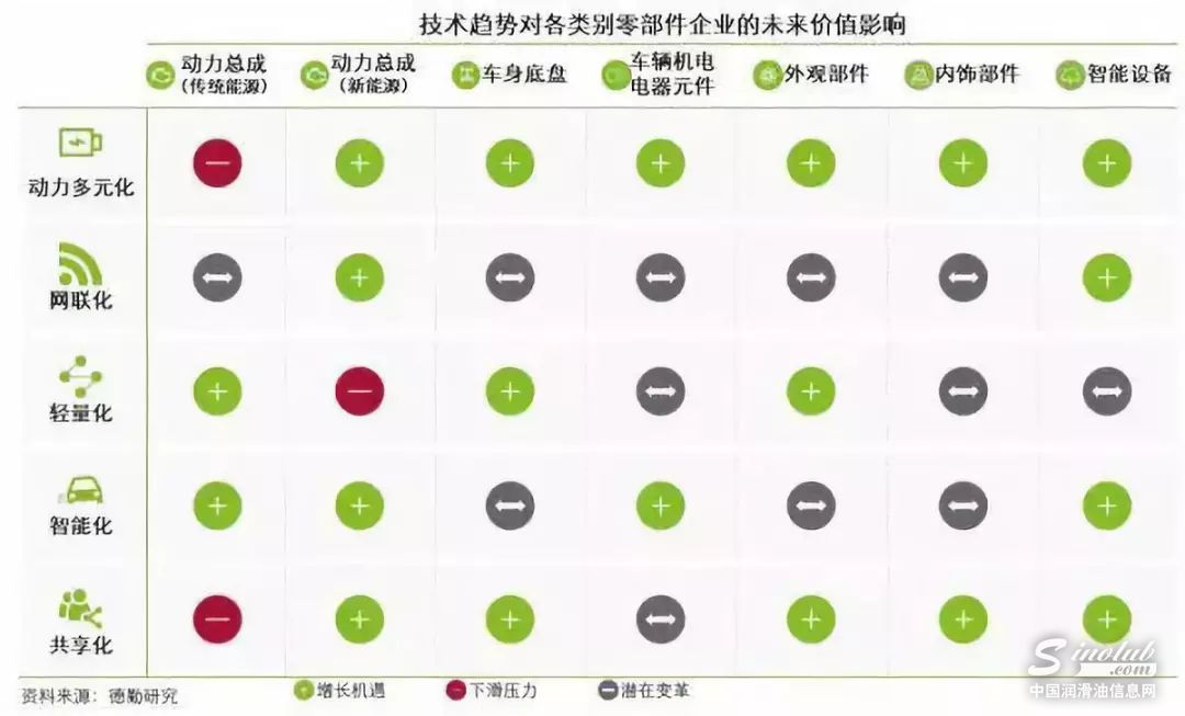 因此,汽车零部件行业因主机厂的需求投资变化,对应产生了能源革命、智能网联和智能制造三大革新驱动力。在三大革新驱动力的影响下,汽车零部件行业内部七大不同产品类别的企业预计将受到不同方向的影响。