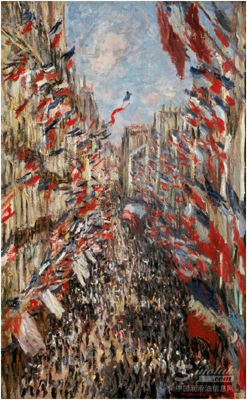 (巴黎蒙特戈依街道:印象派始祖莫奈为博览会的盛况所作的油画。这一年的世博会星光熠熠,雨果、屠格涅夫、柴可夫斯基纷纷亮相。第一批矿物质润滑油,也正式走进公众的视野。)