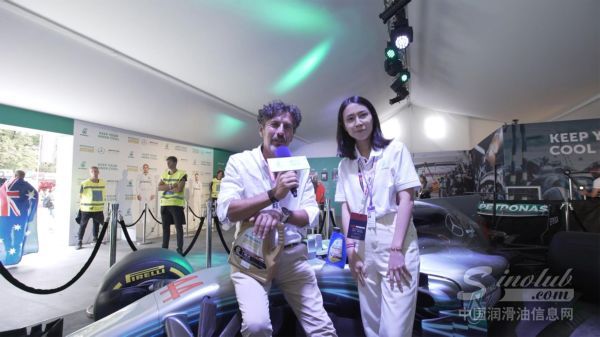 马石油润滑油国际的董事总经理兼CEO Giuseppe D’Arrigo先生在蒙扎赛场的马石油车迷展台与国内现场连线