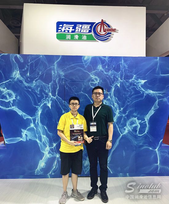 中海油气(泰州)石化有限公司包装油品部销售中心经理颜伟先生与中国润滑油信息网编辑合影留念
