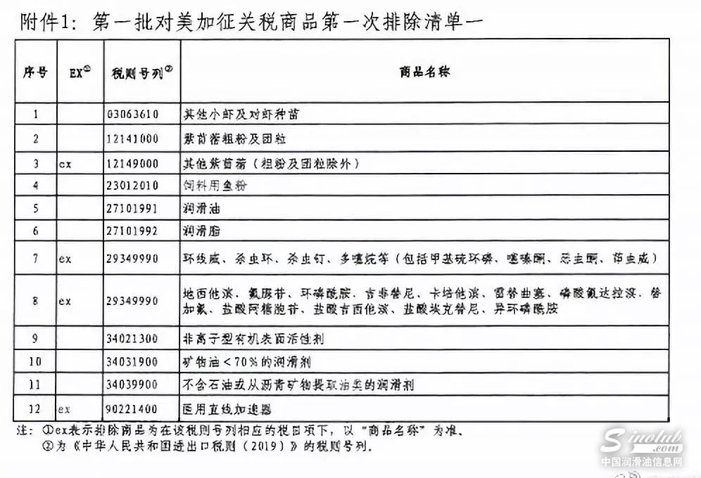 中国对美加征关税商品排除清单公布 润滑油、润滑脂在列