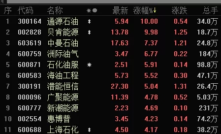 除了原油市场,相关市场也迎来狂欢。燃料油、沥青、MEG等国内能化期货大涨。燃料油期货主力合约上涨6.31%、报2357元/吨;沥青1912合约上涨5.68%报3236元/吨;MEG期货涨停,涨幅为4.98%。股市方面,A股洲际油气等7只石化股开盘涨停、两桶油大涨,港股石化股同样大幅走高。