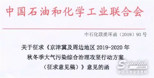 近日,工信部、环境部等部委就《关于征求<京津冀及周边地区2019-2020年秋冬季大气污染综合治理攻坚行动方案(征求意见稿)>意见的函》征求各大生产协会意见。