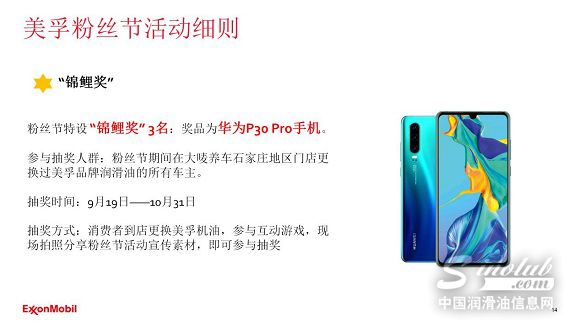 ③粉丝体验月更特设 “锦鲤奖” 3名:换美孚机油,抽华为P30 Pro手机!