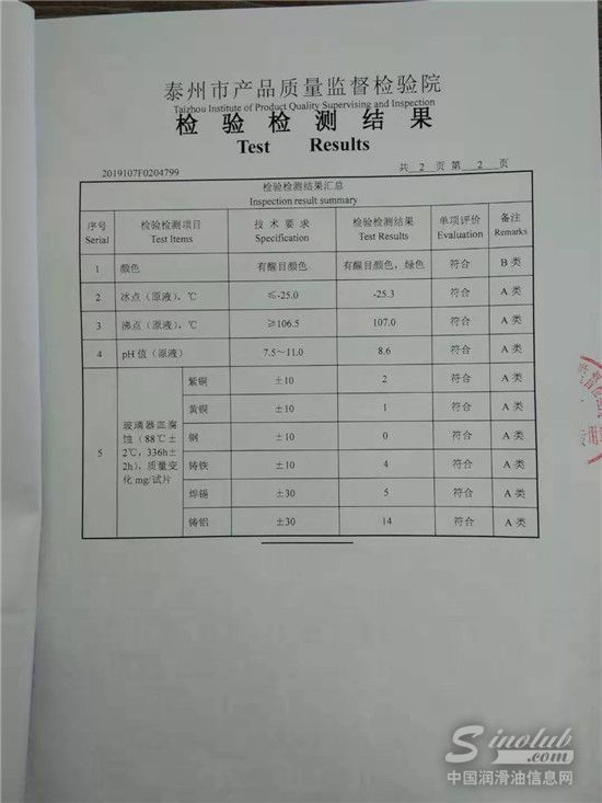 帝航长效防冻液在上海市场监督管理局的抽检检查中产品合格