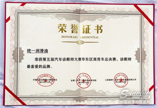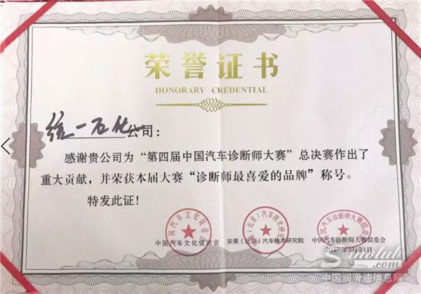 第四届诊断师大赛统一润滑油获得诊断师最喜爱品牌