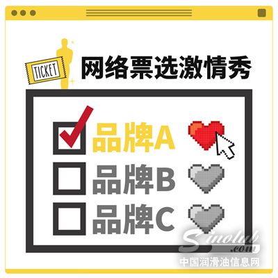 10月23日上午9:00至10月30日下午5:00,登录中国润滑油信息网进入本次活动专题,直接点击“投票”即可参与网上评选投票;也可扫描上方活动页面二维码,选择您挚爱的品牌,轻轻一点,即可投票!