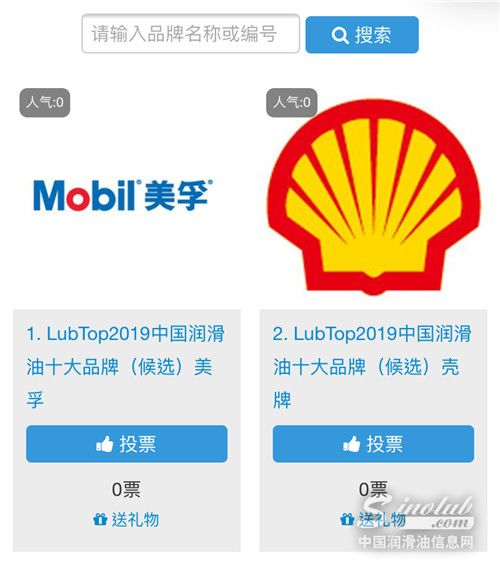如“品牌类奖项/LubTop2019中国润滑油十大品牌”,点击“为行业十大品牌投票”,进入详情页