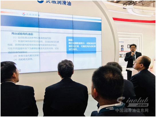 (图:长城润滑油北京研究院新兴产业润滑技术研究所所长赵海鹏进行风电专用油产品介绍)