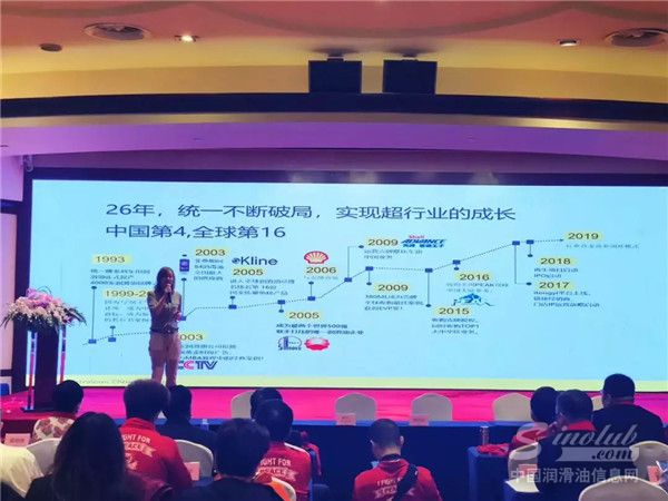 在大会现场,统一石化市场总监吴琦女士发表演讲,向在场的霍氏宗亲名人们讲解统一石化取得的巨大成就。