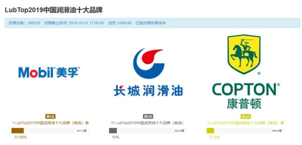 LubTop2019中国润滑油十大品牌投票中报网红三甲