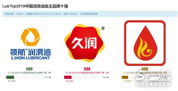 LubTop2019中国润滑油自主品牌十强投票中报网红三甲