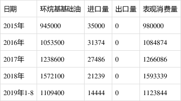 表 环烷基润滑油表观消费量