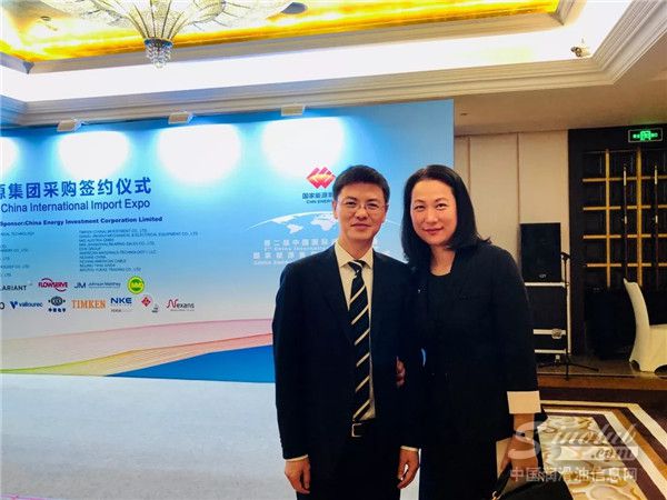 壳牌全球商务副总裁、壳牌中国润滑油业务总裁汤明然女士(右)与壳牌工业润滑油销售总经理陈斌先生(左)应邀出席签约仪式