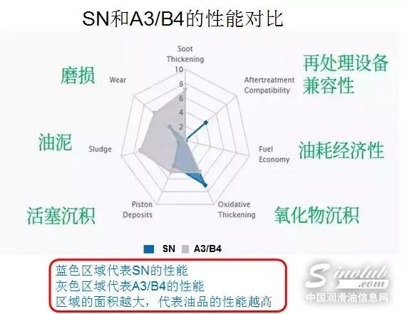 从蛛网图可以看到,和API SN相比,ACEA A3/B4明显占优势。普通的5W40/0W40 SN不能替代5W40/0W40 A3/B4。