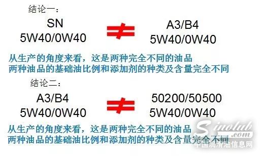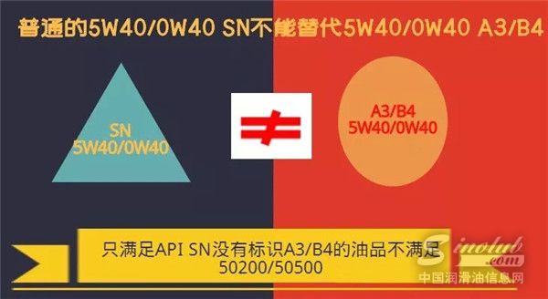 只满足API SN没有标识A3/B4的油品不满足50200/50500