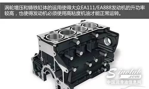 大众旗下主流的发动机总成EA111(1.4TSI和1.6L发动机)、EA888(1.8TSI和2.0TSI发动机)无一例外地采用了铸铁缸体以符合涡轮增压技术所需的缸体强度。但由于铸铁缸体和活塞环的膨胀系数不同,使得必须在活塞环以及缸体之间设计较大的间隙,才能保证在高转速工况下活塞环膨胀后不会使得活塞卡住缸体。但对于城市用车环境,活塞环温度较低、膨胀量较小,使得活塞环与缸壁的间隙较大从而造成机油消耗量增加。为了保证具有良好的密封性及润滑能力,大众车的发动机就要使用稠一点的机油。与此同时,废气涡轮技术的采用也导致了发动机机油温度相对较高,所以只有使用粘度更高的机油才能获得合适的机油粘度来为发动机提供良好的密封、润滑以及保护。