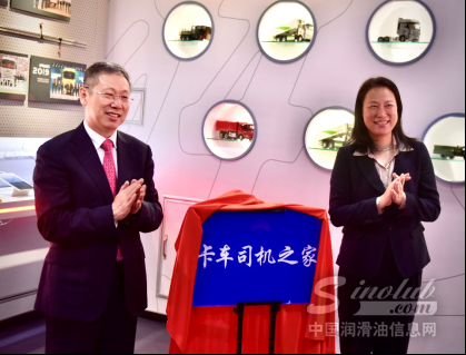 一汽集团总经理助理 一汽解放董事长胡汉杰先生与壳牌集团全球商务副总裁壳牌(中国)润滑油业务总裁汤明然女士携手为卡车司机之家揭牌