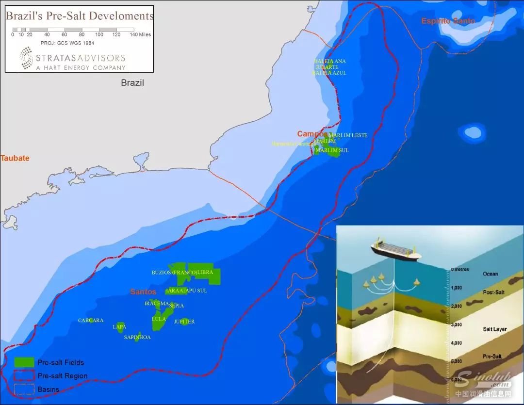 公开资料显示,伴随着规模油气资源的发现以及油气合作开放政策,巴西已经成为油气行业最活跃的地区之一,在这里汇聚了埃克森美孚、壳牌、道达尔、挪威国油等众多油气巨头。2006年以来,巴西在坎波斯(Santos)和桑托斯(Campos)两个盆地,掀起了盐下油气田勘探开发的序幕,发现了一个长800公里、宽200公里的盐下油气资源带。