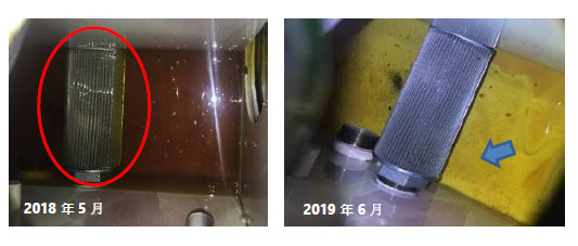 经过13个月的使用,美孚DTE® 26 UT长效液压油的各项理化指标正常,磨损金属一直维持较低水平,预计换油周期可延长至原来的2倍(即4年);油箱内部和油滤均比换油前更加干净,系统清洁性大幅提升,滤芯更换减少。由此可见,美孚DTE® 26 UT长效液压油不仅从而有效改善了设备的润滑状况、降低了停机时间,最终帮助企业降低了成本,提升了经济效益。