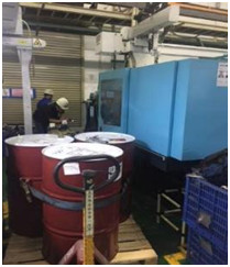 [7]以前一年一台注塑机消耗2桶润滑油,换油后一年一台注塑机消耗1桶润滑油,每桶容量208升,经计算,每年总计可减少10,400升废油产生。