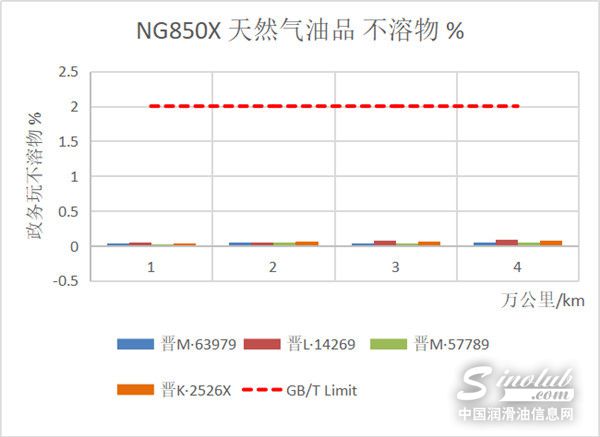 当油品中产生过多的油泥及非油溶性沉积物时,发动机的输油系统就有可能发生不畅,产生堵塞,影响发动机的正常运行,通过检测旧油中的不溶物指标看出,NG850X产品在换油期内的不溶物含量远低于标准范围,表明油品在对油泥、沉积物方面拥有优异的性能,持久保持发动机清洁。16万公里的实际行车试验数据表明,康普顿NG850X合成技术天然气产品在换油期内优异的抗氧化、抗硝化、沉积物控制、油压保持及对发动机的抗磨保护性能,满足天然气车辆主流车型的使用。此次为保证此次数据的检测准确性,行车试验油品检测数据由上海SGS通标标准技术服务有限公司和青岛康普顿石油化工有限公司检测中心与共同检测完成。