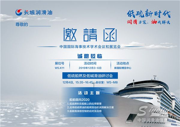 12月3日,第20届中国国际海事展将在上海新国际展览中心隆重开幕,也让我们一起走近“海运重器”背后的“护航者”,解锁中石化长城润滑油(W5,K11)等领先品牌的“润滑黑科技”!值得关注的是,中石化长城润滑油“低硫船燃及低碱油研讨会”将在12月4日15:35-16:45在新国际展览中心会议室W5-M8隆重召开,期待以全面润滑方案与您共赴“低硫新时代”之约!
