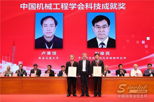 李培根理事长向卢秉恒院士、刘维民院士颁发2019年度中国机械工程学会科技成就奖