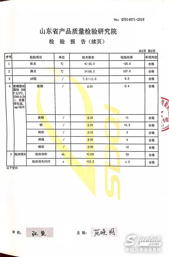 这次防冻液的抽检是由山东省市场监督管理局发起的,由山东省产品质量检验研究院来进行随机抽样,并在现场就对所抽样品进行封条处理,按照 GB 29734-2013《机动车发动机冷却液》为检验依据,以CCGF 606.4-2015《机动车发动机冷却液产品质量监督抽查实施规范》为判定依据。经过研究院的仔细化验与勘察,得出以下检验结论:经抽样检验,该产品所检项目符合GB 29734-2013《机动车发动机冷却液》标准要求,依据CCGF 606.4-2015《机动车发动机冷却液产品质量监督抽查实施规范》判定为合格。整个过程公开且透明,再一次用实际证明了金球石化的非凡实力。