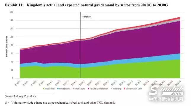 预计沙特未来对天然气的需求将主要受到发电、炼油和工业部门(包括化工原料)需求预期增长的推动。