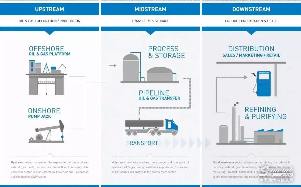 一般而言,油气行业的上游业务包括油气勘探、开采和生产,中游包括运输和存储,下游则包括精炼、贸易和市场营销。